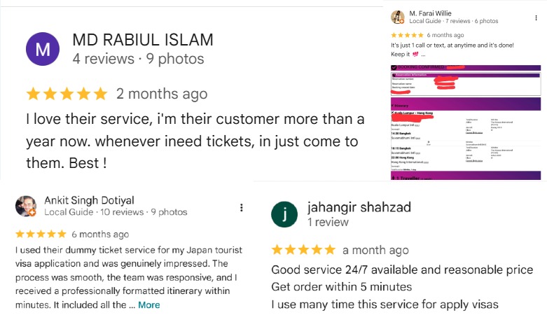 500+ glowing reviews for our dummy ticket for visa service on Google prove customer trust and satisfaction.