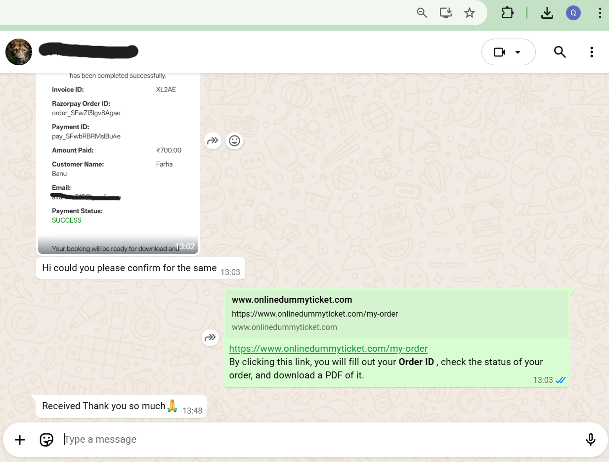 Click on Check Order and enter your Order ID. Your order will be ready within 10–30 minutes. You can download the ticket or check order status anytime.